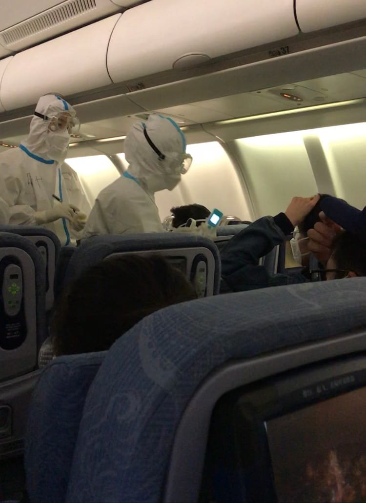 飞机即将落地前空姐会派发一张纸,上面要求我们写上自己的名字和座位号。飞机落地后海关人员会上来飞机给这张纸写上一个字母。我和周围的人都被写上了字母M,标记我们是密切接触者;可能是飞机上有人有发热症状。后来确实查出来我们飞机上有一个女孩子感染了。